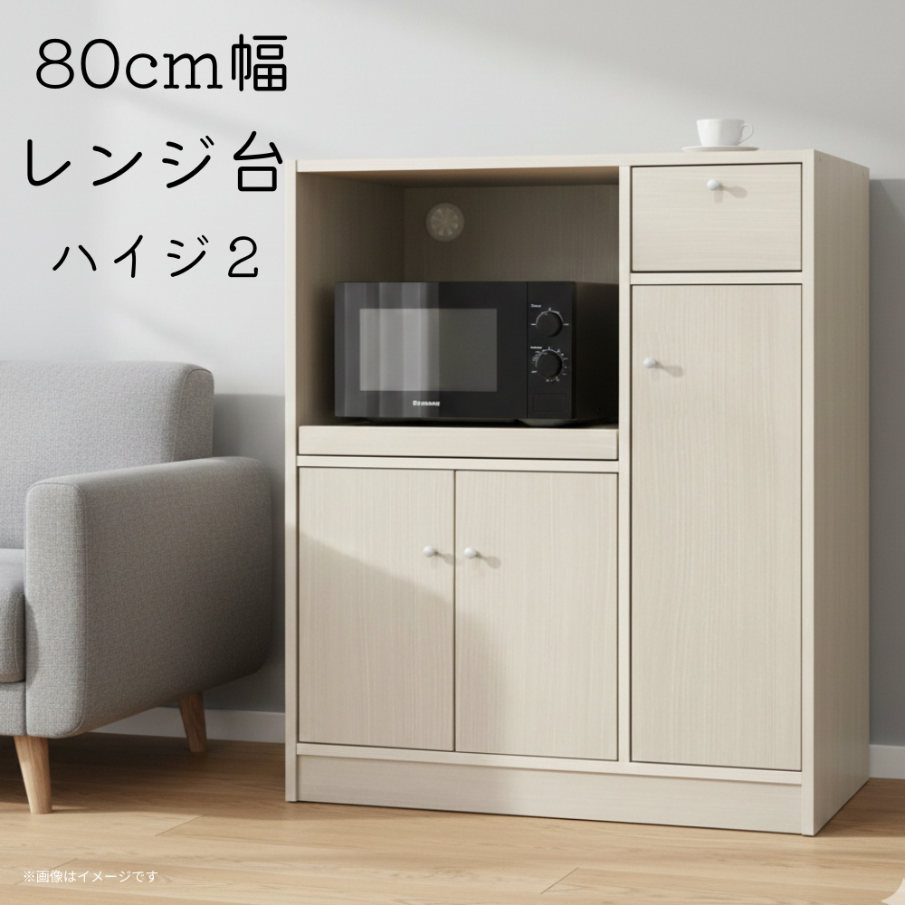80cm幅 レンジ台 ロココ HSG90-80L ホワイトウォッシュ ライトブラウン