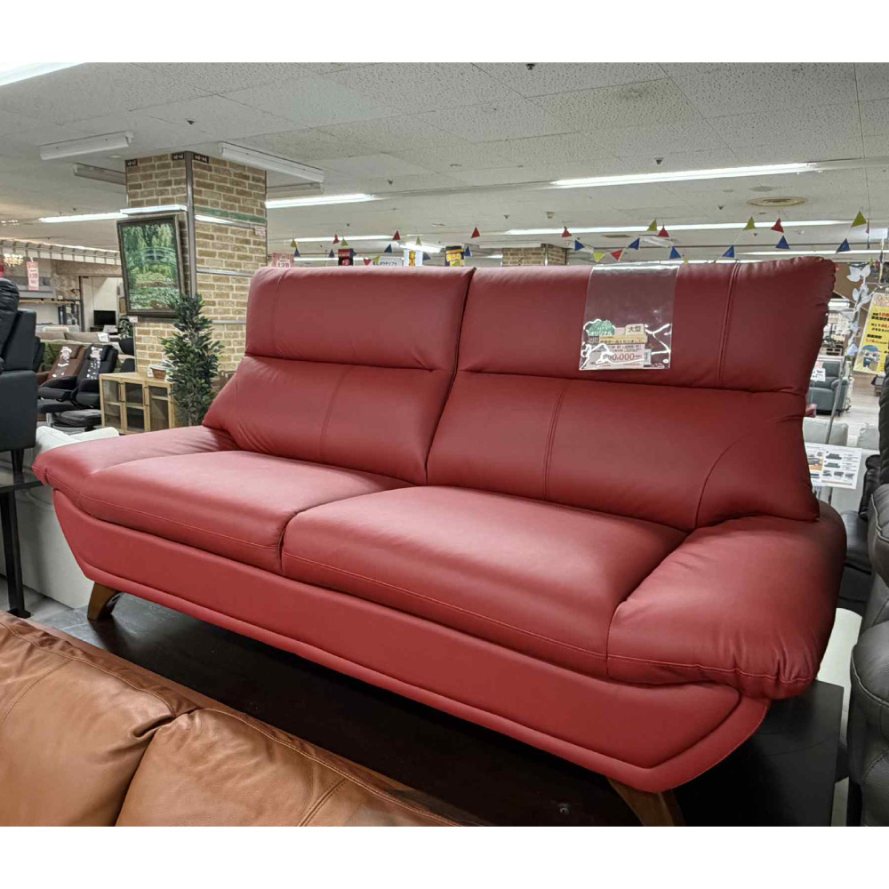 革張り 3人掛けソファ アルバ レッド【室蘭中央店展示品】【現品限り】