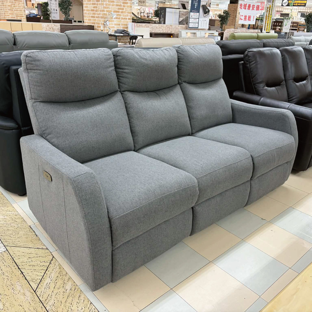 3人掛け電動リクライニングソファ フラー ライトグレー【室蘭中央店展示品】【現品限り】