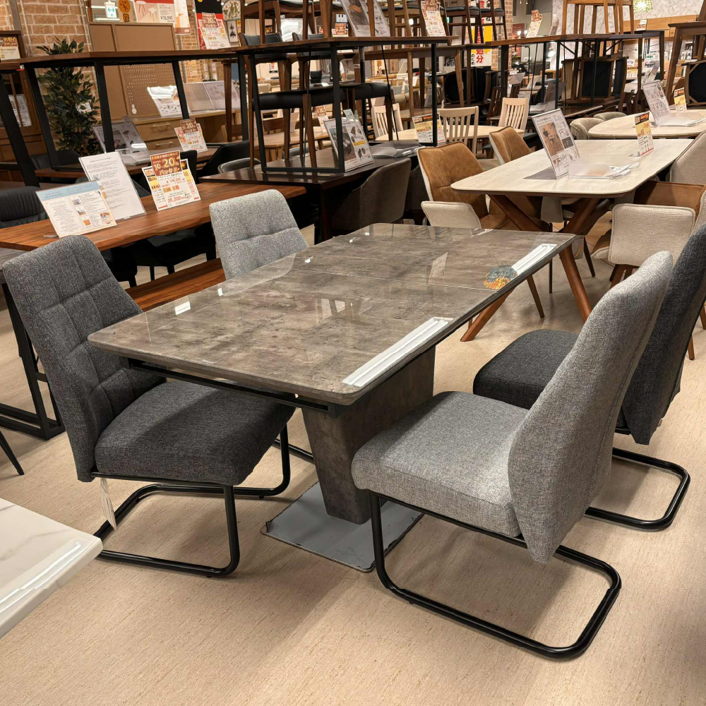 【8000ポイント還元】140-180cm幅 伸長式ダイニング5点セット ハイト 石目 ダークグレー ライトグレー【栄町店展示品】【現品限り】