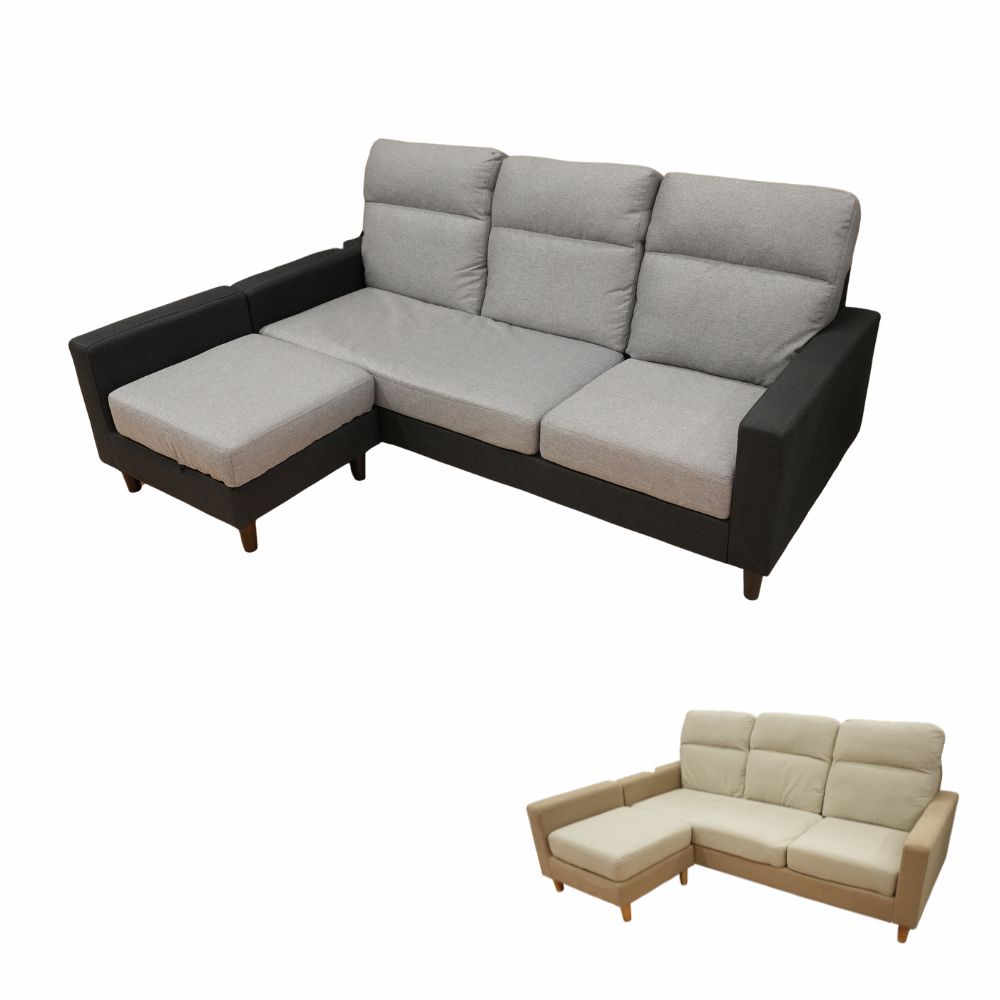 カウチソファ デュリス2 グレー/ブラック アイボリー/ブラウン