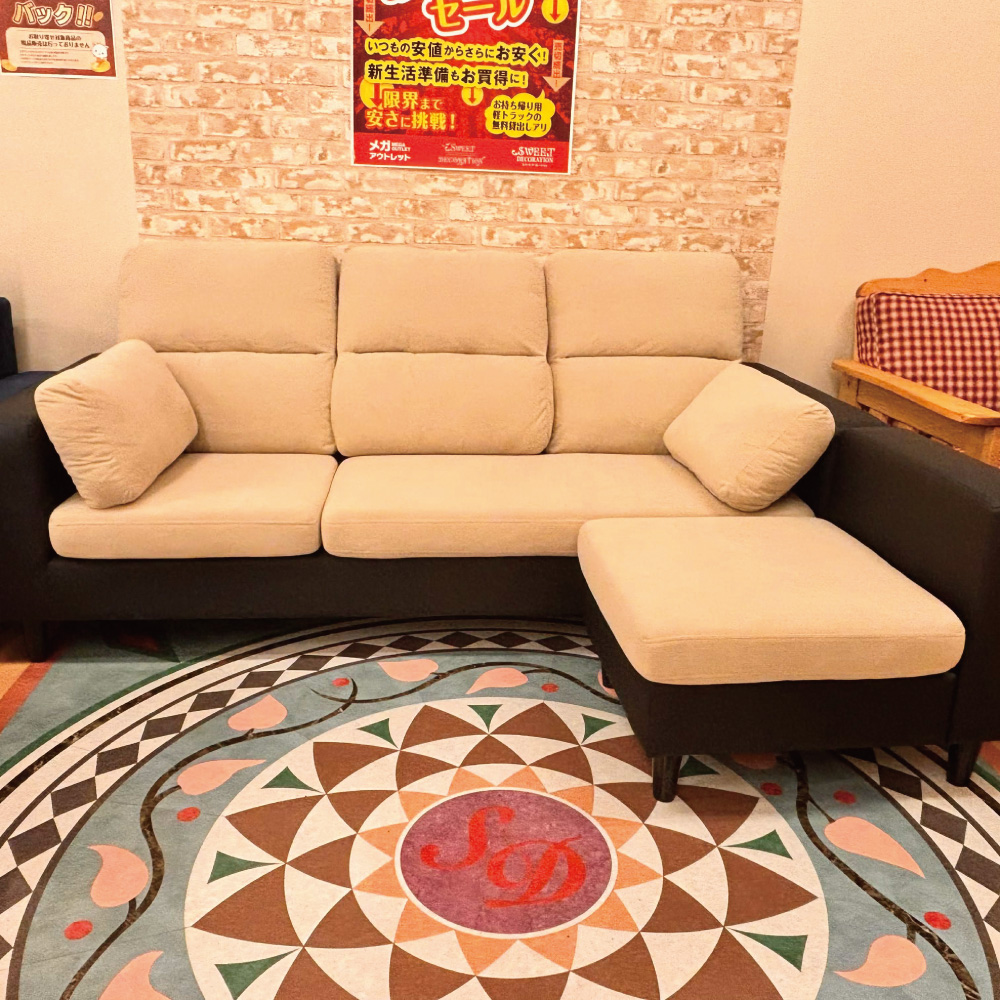 カウチソファ ノエリア ベージュ/ブラック【西岡店展示品】【現品限り】