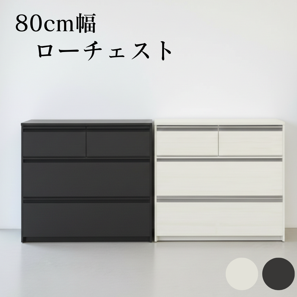 80cm幅ローチェスト ケース2 ホワイト(木目柄) ブラック(セラミック柄)【お取り寄せ品】
